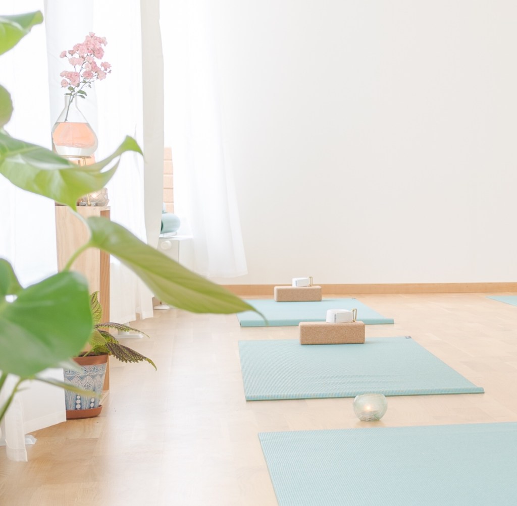 Yogamattor och alla tillbehör finns att låna (men du kan såklart ta med egen om du vill!)
